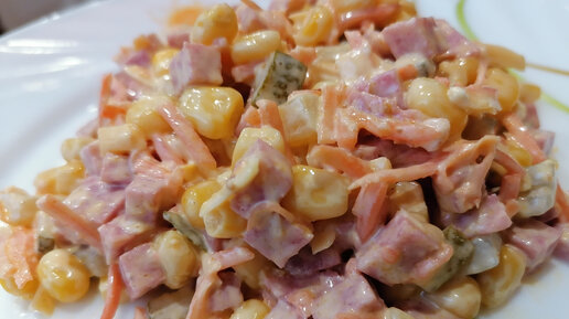 Вкусный и простой в приготовлении салат с колбасой и морковью по-корейски