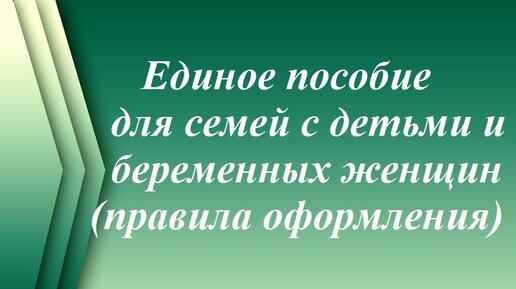 Правила оформления Единого пособия для семей с детьми и беременных женщин.