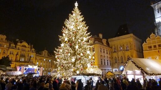 Ёлка и рождественская ярмарка на Староместской площади в Праге. Декабрь 2022. Новый 2023 год