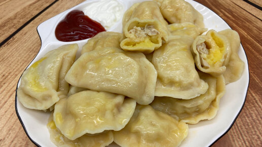 Вареники - неразлучники, с двойной начинкой, мясом и картофелем. Суперское тесто-при варке не порвется ни один! #рецепты