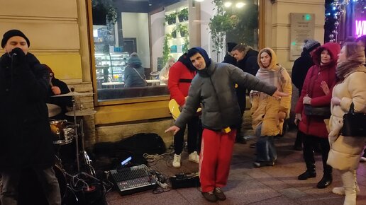 Уличные музыканты, на Невском проспекте выступает кавер группа Айдахо и солист Алексей с песней, Баста - Сансара, на танцполе Пётр Петрович!