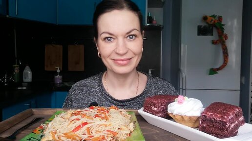 МУКБАНГ ФУНЧОЗА С КУРИЦЕЙ И ОВОЩАМИ, ДЕСЕРТ 🍰🧁/MUKBANG HALK FAMILY ЕДА