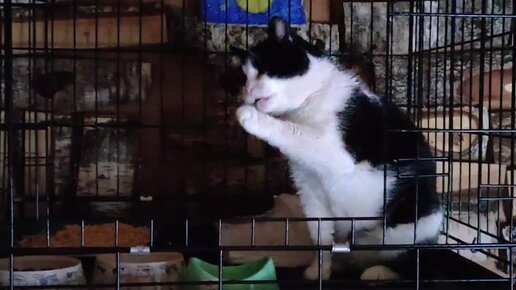 Умывается после вкусного ужина