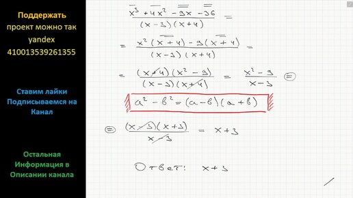 Математика Сократите дробь (x^3+4x^2-9x-36)/((x-3)(x+4))