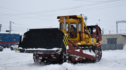 Бульдозер ДЭТ-320. Уборка снега. / Russian monster bulldozer DET-320. Diesel-electric tractor.