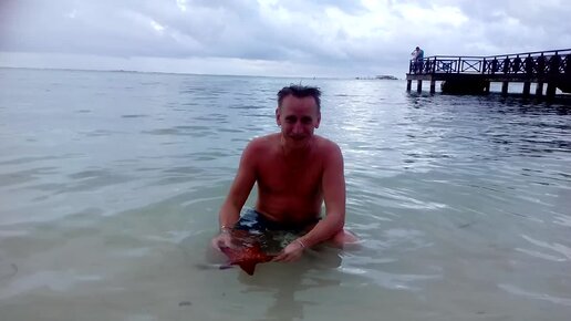 Поймали морскую звезду! Первый раз держим такое чудо в руках!