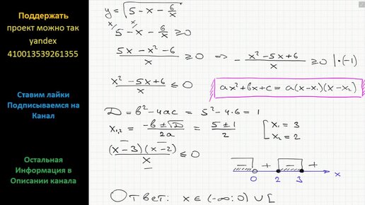 Математика Найдите область определения функции y=√(5-x-6/x)