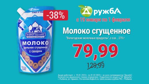 Акции супермаркетов "Дружба" с 19 января по 1 февраля 2023 года. Молоко.