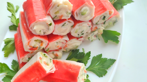 За считанные минуты с легкостью готовятся крабовые палочки фаршированные всего из нескольких ингредиентов!