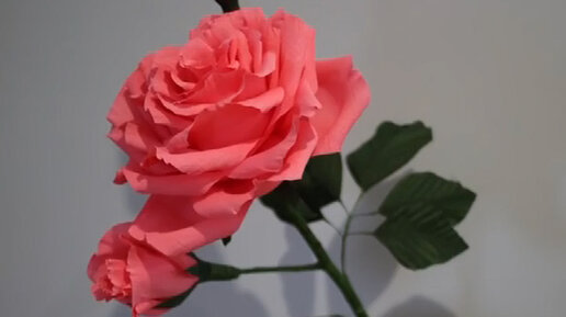 Красивая большая роза с бутонами из гофрированной бумаги, МК