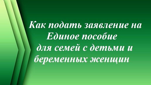 Как подать заявление на Единое пособие для семей с детьми и беременных женщин .