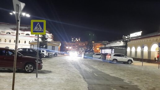 Вечерняя Уфа зимой центр, здание Гостиного двора сквер Ленина памятник банк втб газпромбанк,