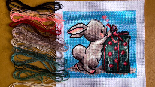 ОБЗОР ВЫШИВКА КРЕСТИКОМ ИЗ ФИКС ПРАЙС // FIX PRICE // ЗАЯЦ С ПОДАРКОМ