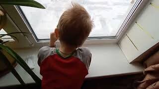 Мою окно \ Вешаем гирлянду