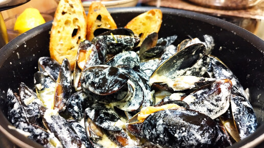 Мидии в сливочно - чесночном соусе