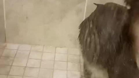 Кот кайфует от душа 🛀🐱