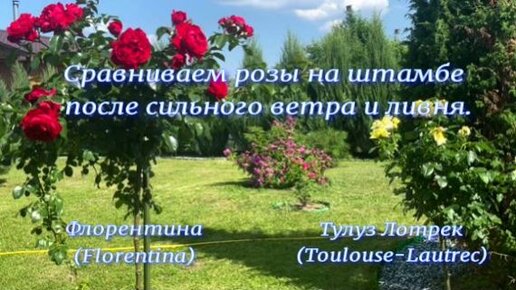 Сравниваем розы на штамбе после сильного ветра и ливня. Флорентина (Florentina) и Тулуз Лотрек (Toulouse-Lautrec)