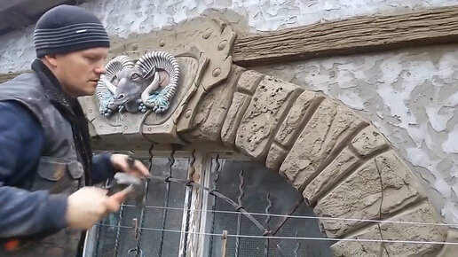Оформление цоколя под декоративный камень, оформление окна под ковку. Decorative rock. Art concrete.