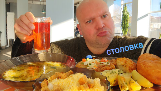 МУКБАНГ в столовой/обжор лапша, котлета с картофелем фри,цезарь и свинина