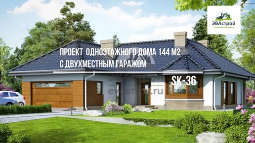 Проект одноэтажного дома 144 м2 с двухместным гаражом, эркером и террасой - SK-36