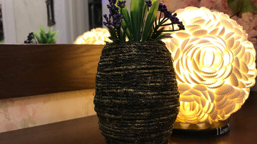 Взяла старый подсвечник, джутовую нить, клей ПВА и сделала простую и лаконичную по стилю вазочку!