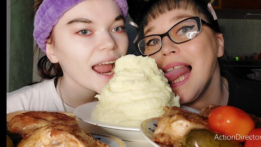Мукбанг | Гора пюре,жареная курица и соленья . Вот это обжорчик😁