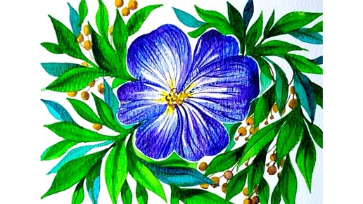 🟣🌸🔵 Сине-фиолетовый цветок. Рисунок кистью для каллиграфии акварельными красками.