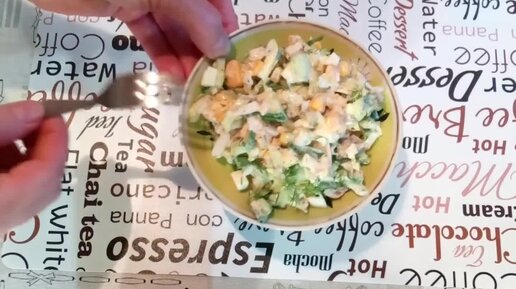 Вкусный и простой салатик из того, что нашлось в холодильнике.