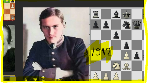 Алек-др Алехин успешно выкарабкался из дебютной ямы во французской защите Олланда, играя белыми - ну и вскоре черным только сдаваться, 1912