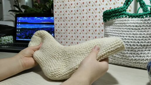 Связала носок для примера укороченными рядами. Эксперимент