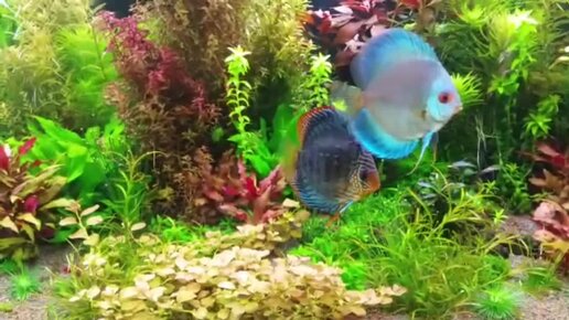 Дискусы кормят малька
