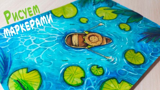 Рисуем пейзаж маркерами.Рисуем воду и кувшинки маркерами