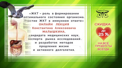 К.А.Малышкин (к.м.н.) Онлайн лекция «ЖКТ–роль в формировании оптимального состояния организма»