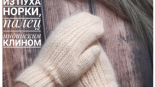 Варежки с красивым, простым узором из пряжи "Пух норки". Палец индийским клином.