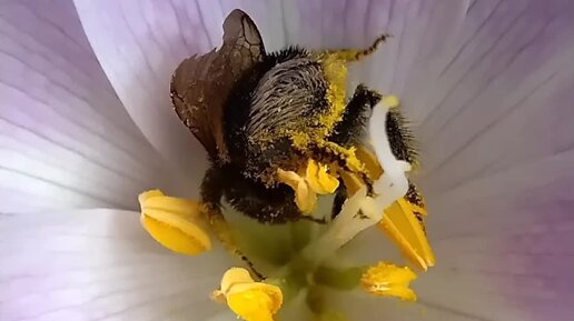 Самозабвенное купание шмеля в пыльце безвременника