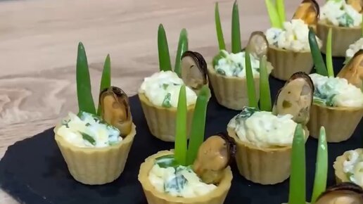 Тарталетки с копчёными мидиями - это безумно вкусно! @Вкусные рецепты #🥙🥗🥗🥗