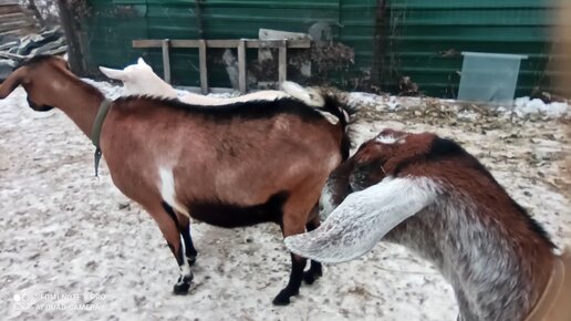 Кобель Черныш хочет подружиться с козами, но Малышка даëт ему отпор. На улице гололëд
