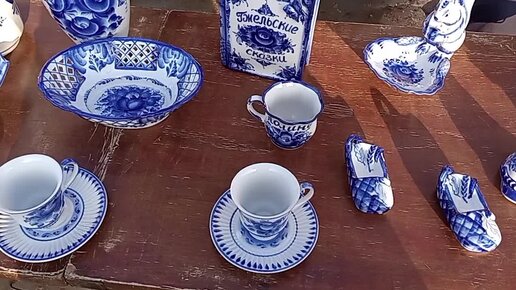 Изделия "Гжель" на рынке в Переславле-Залесском.