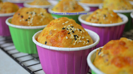 ВКУСНЫЕ ЗАКУСОЧНЫЕ КЕКСЫ С СЫРОМ И ВЕТЧИНОЙ. Быстрый перекус на работе, а можно дать ребенку в школу. Готовим без миксера.