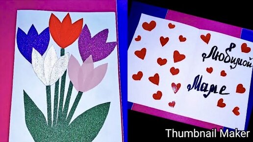 Как сделать открытку на 8 МАРТА и ДЕНЬ РОЖДЕНИЕ, ПОЭТАПНО! Красивая открытка на 8 марта!Открытка маме
