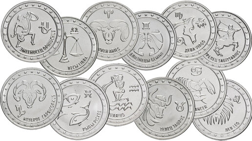 Монеты Приднестровья серии Знаки Зодиака 2016 года выпуска.