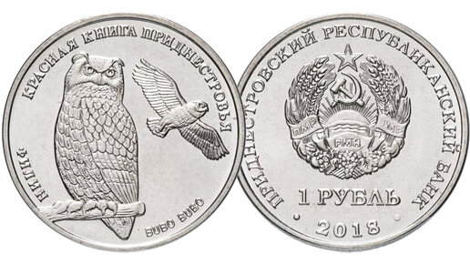 Монета ПМР Филин из серии Красная книга Приднестровья.