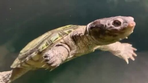 Водоплавающая черепашка парит под водой