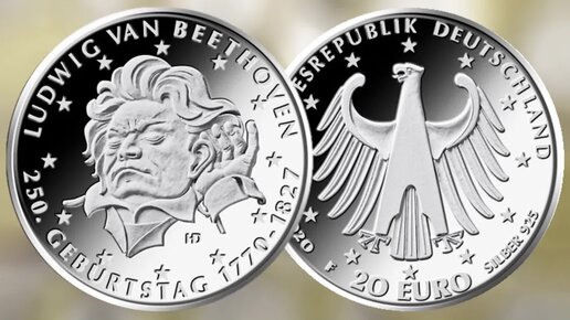 Монета Германии 20 евро. Людвиг Ван Бетховен.