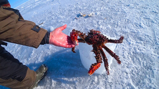 Ловля краба со льда! 2-ух килограммовый краб!