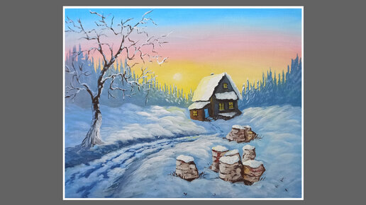 Как легко нарисовать зимний заход солнца с помощью 5 цветов ❄️☀️🎨 Пошаговое видео🎥