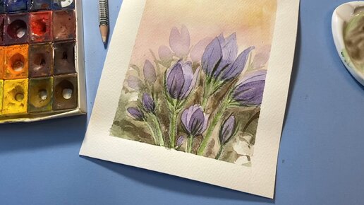 Сон-трава акварелью. Рисуем нежную весеннюю открытку #рисуемкаждыйдень #рисоватьпросто #акварельнаяживопись #рисованиепошагово