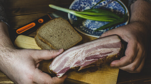 Необычный Мужичий сэндвич из обычного сала и хлеба.