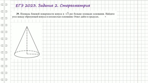 ЕГЭ 2023. Задание 2. Площадь боковой поверхности конуса в корень из 2 раз больше площади основания.