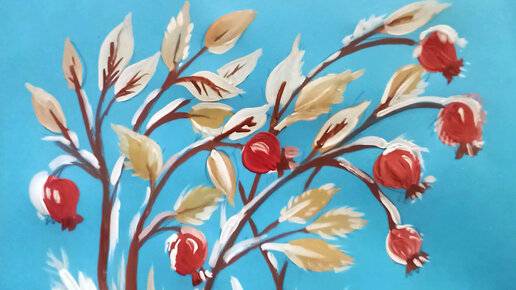 Рисуем шиповник в инее зимой. Рисование гуашью для детей 7-12 лет.